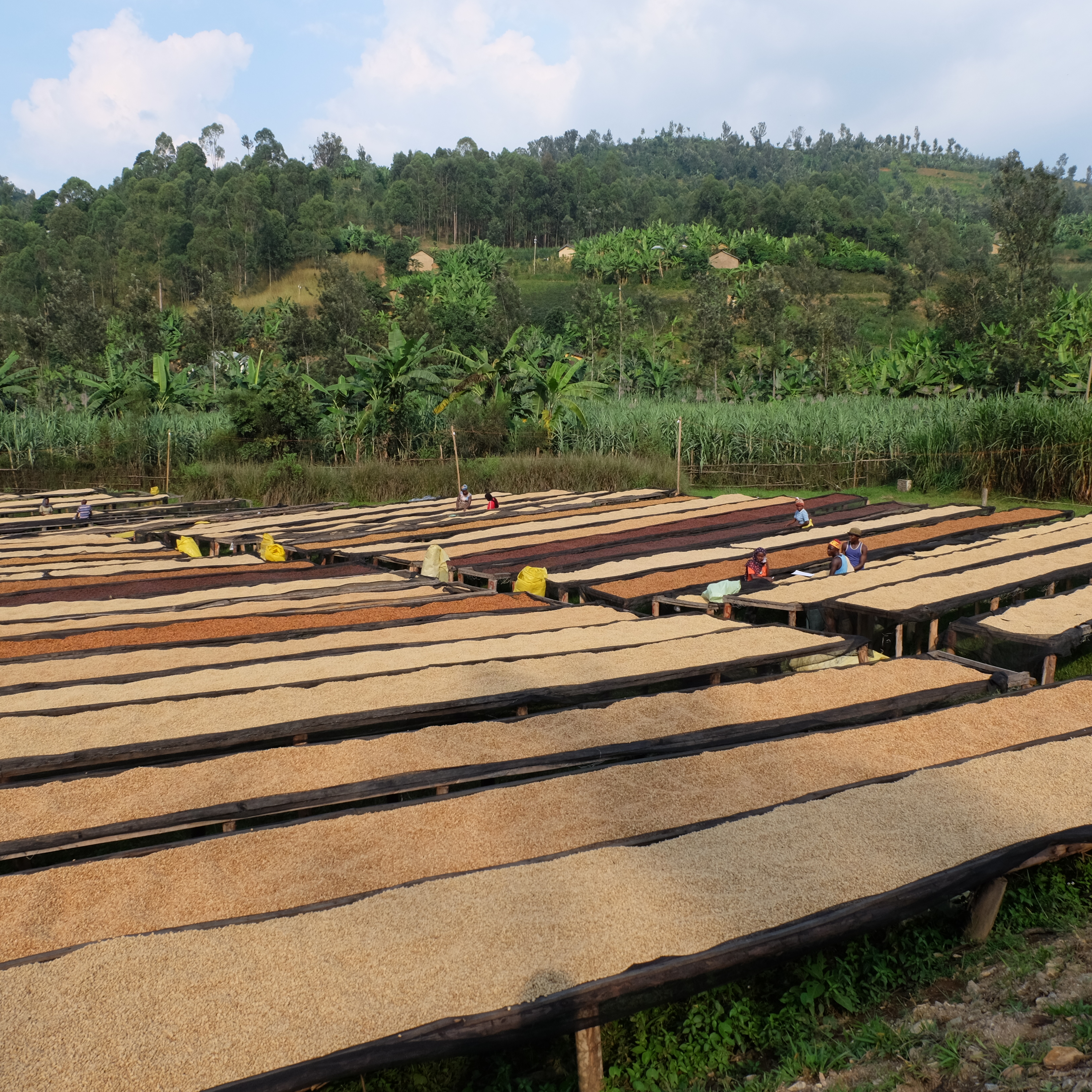 ルワンダのコーヒーは高地で栽培されているため、一般的に密度が高い特徴があります。ブルボン種が主流で、豆のサイズは小ぶりです。