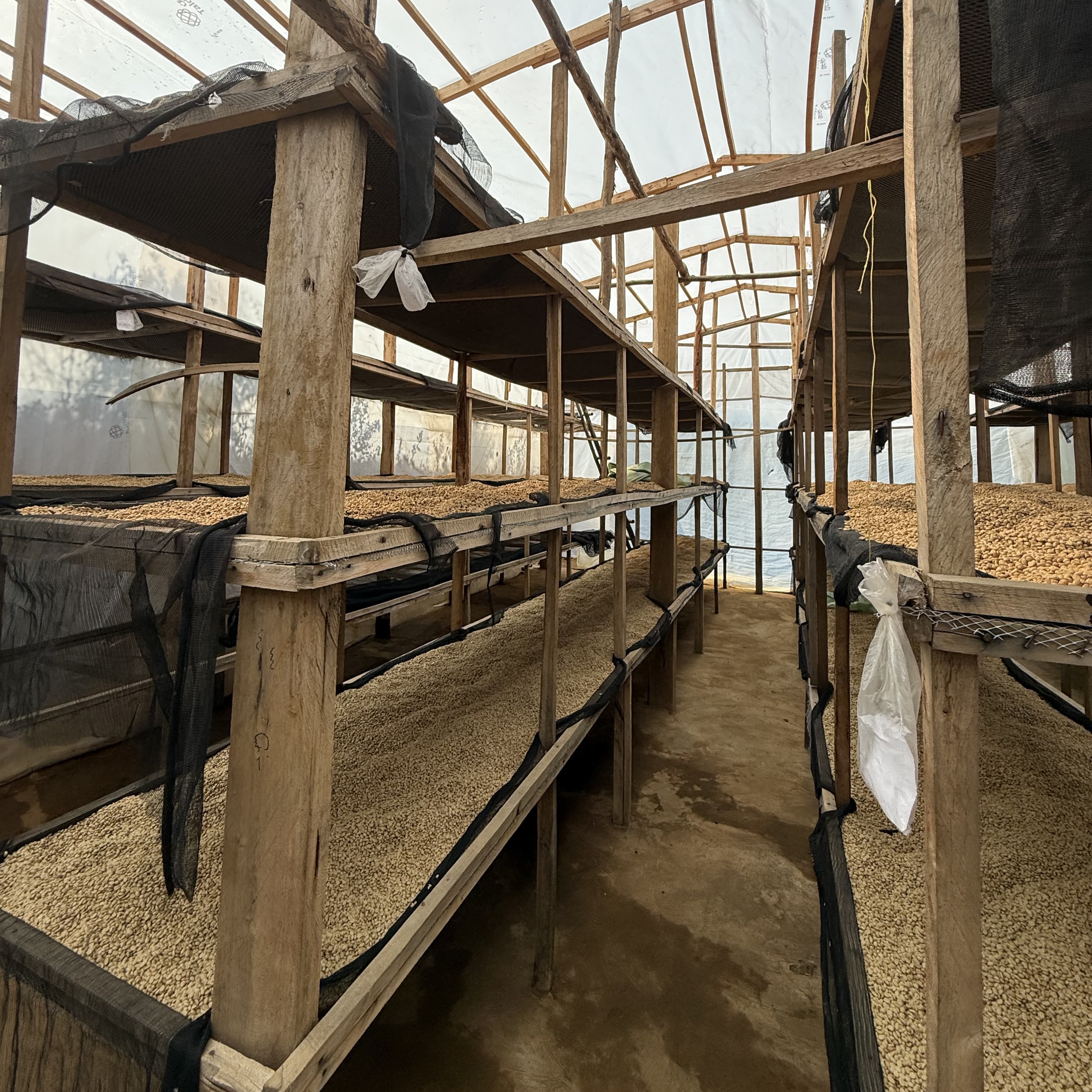 一昨年グリーンハウスを導入しました。3段式の省スペースとなっており、天候に左右されずクオリティの高いコーヒー生産ができるようになりました。