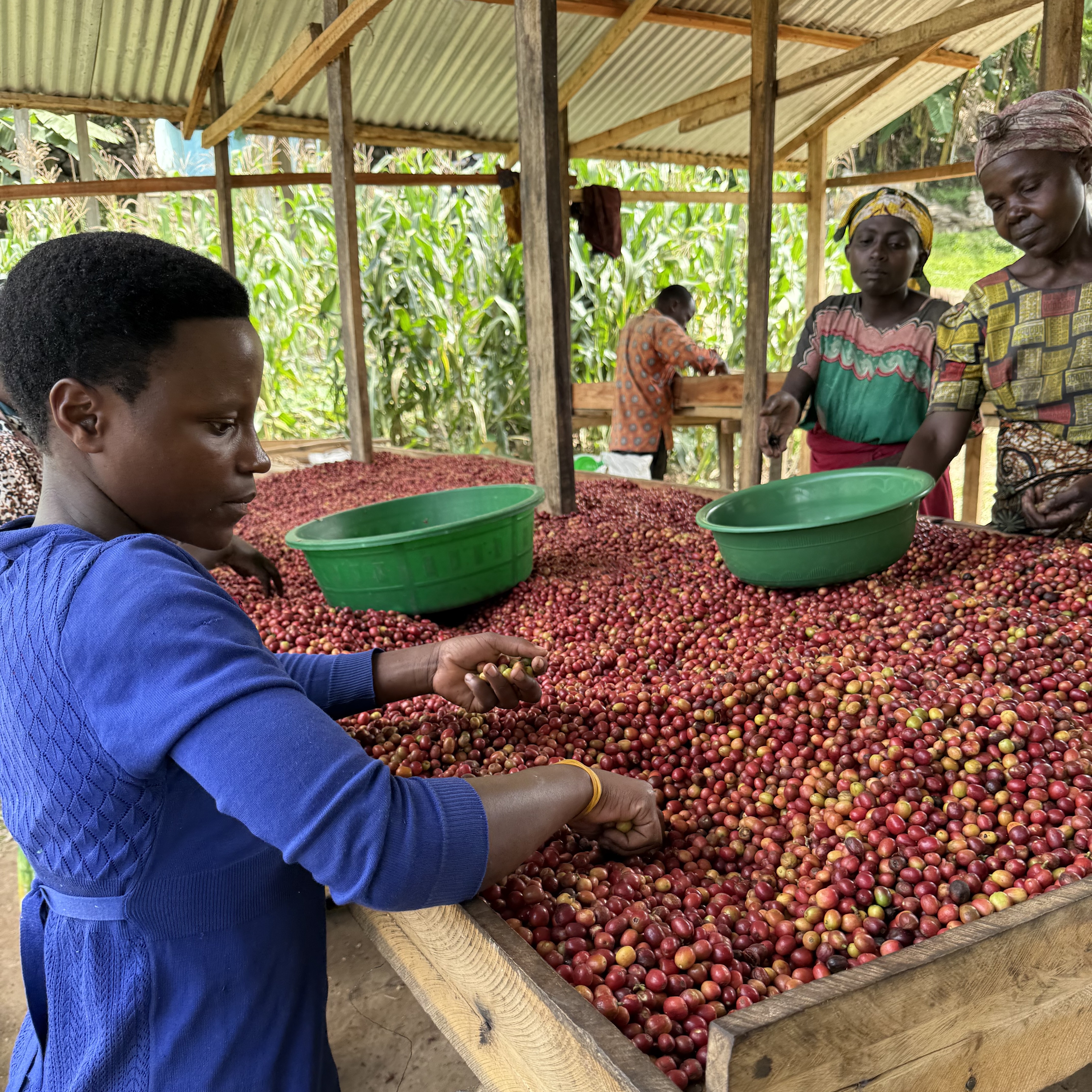 ルワンダのコーヒーは高地で栽培されているため、一般的に密度が高い特徴があります。ブルボン種が主流で、豆のサイズは小ぶりです。
