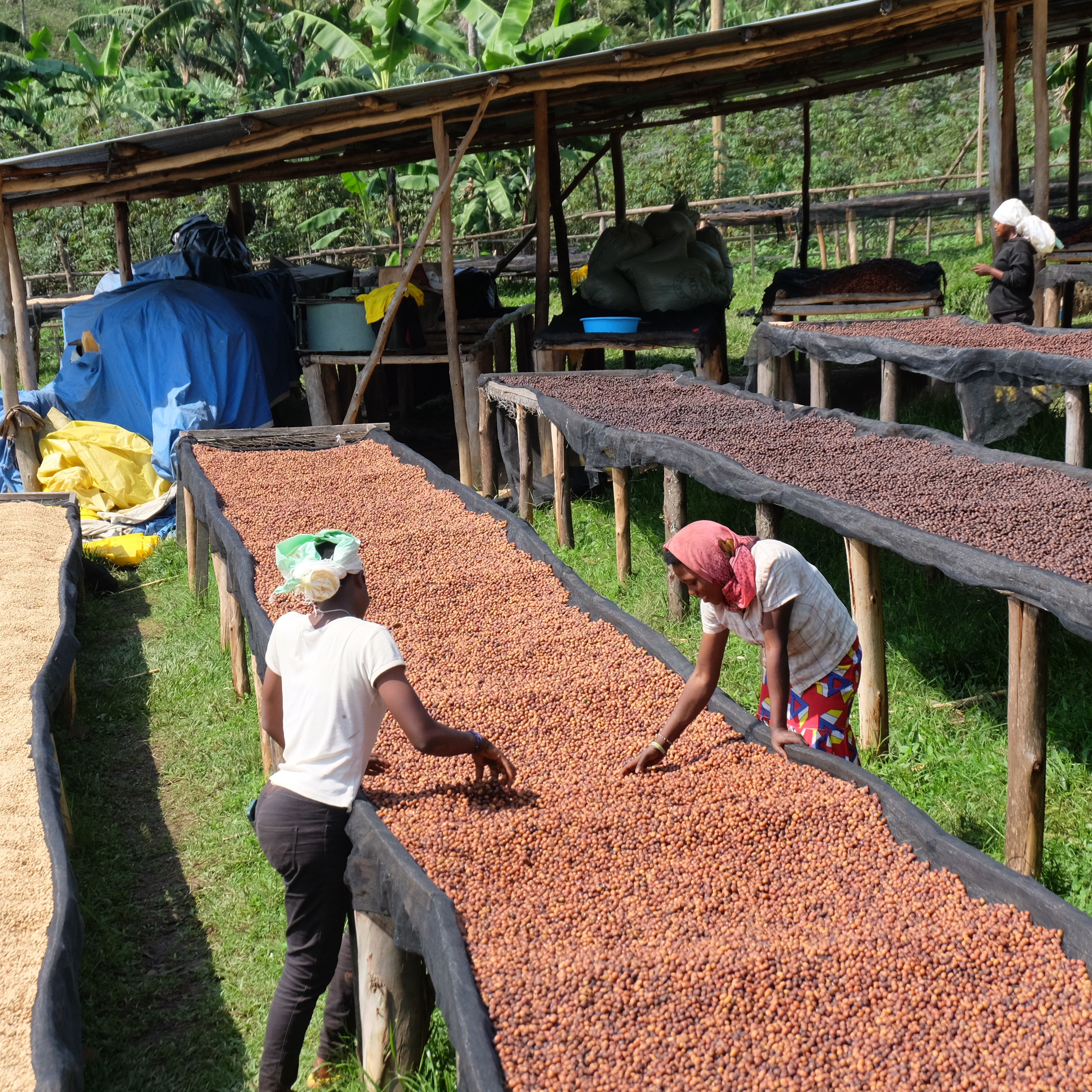 ルワンダのコーヒーは高地で栽培されているため、一般的に密度が高い特徴があります。ブルボン種が主流で、豆のサイズは小ぶりです。