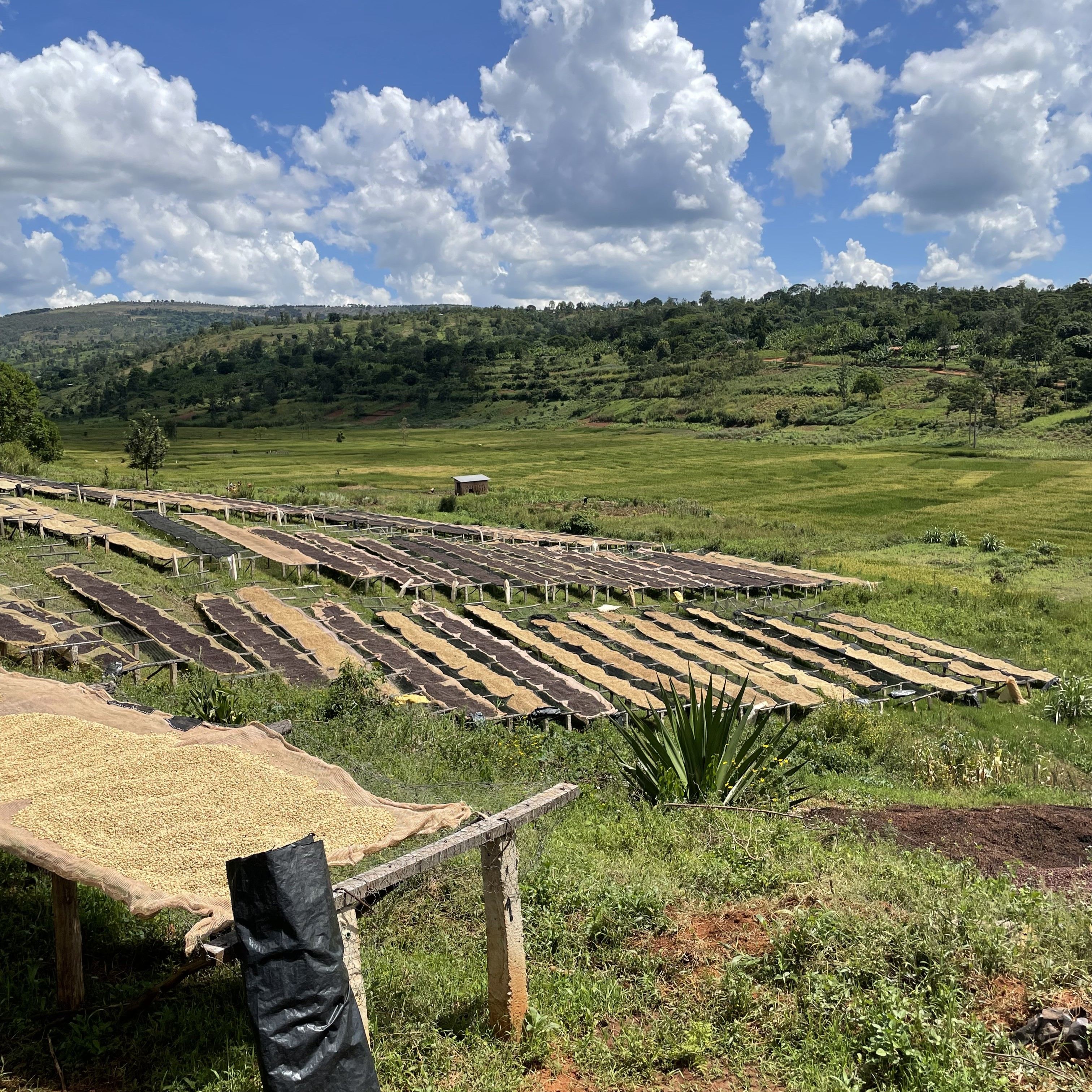 このWSは首都のブジュンブラから車で4時間ほど、日本人からすると古き故郷を思わせる、緑豊かな田園風景が広がる一帯に建設されました。この辺りはなだらかな土地で精製に必要な水資源が豊かなエリアです。日差しがさんさんと注ぎ、乾燥が比較的早く進むことも特徴です。